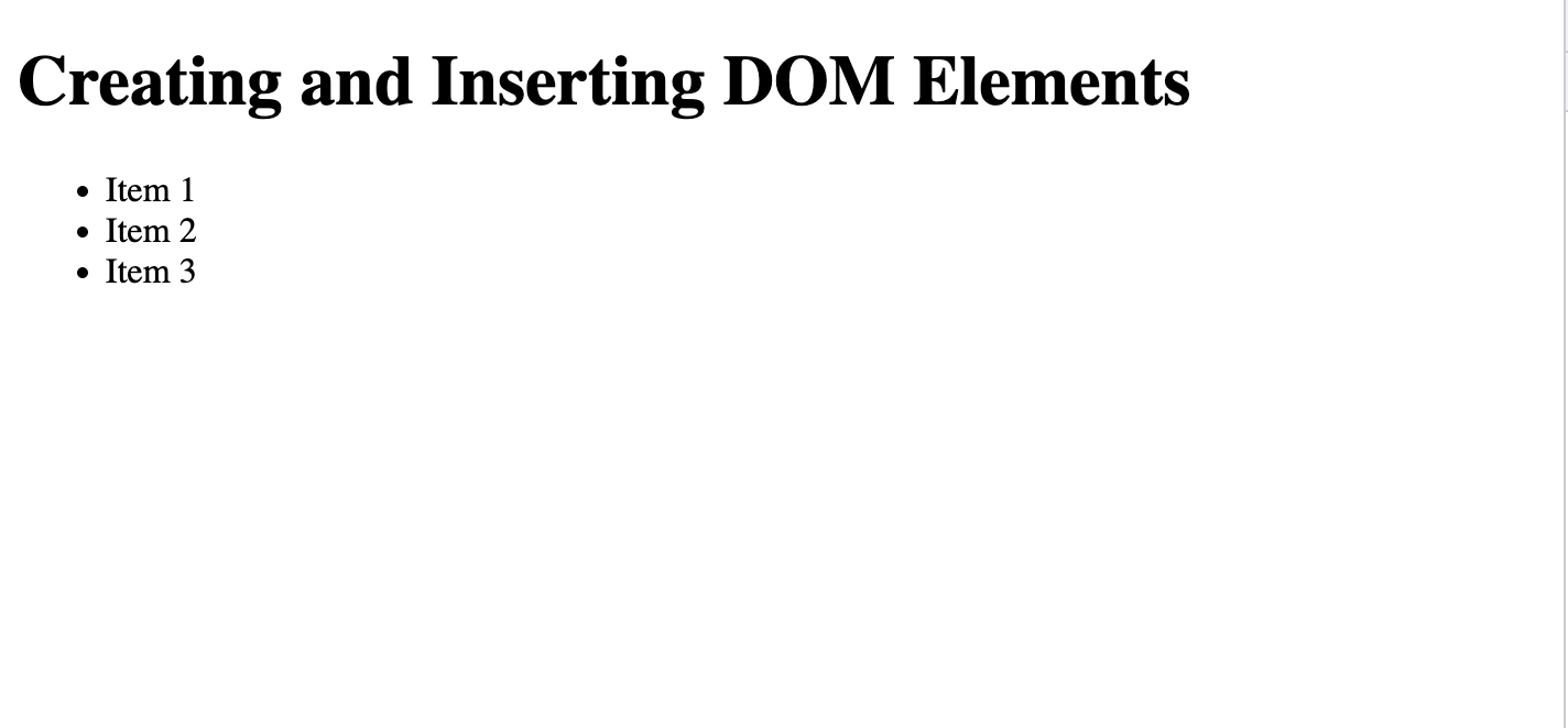`);Creating & Inserting DOM Objects Manually